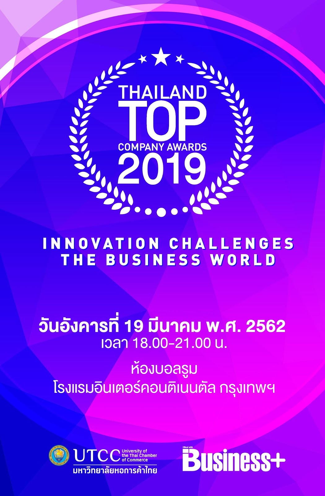 ทั้งนี้การมอบรางวัล “THAILAND TOP COMPANY AWARDS 2019” ในปีนี้จัดขึ้นภายใต้แนวคิด “Innovation Challenges the business world นวัตกรรมเปลี่ยนโลกธุรกิจ” ความสำเร็จขององค์กรในยุคแห่งนวัตกรรม รวมจำนวน 30 รางวัล แบ่งเป็น 2 ประเภท คือ รางวัลตามประเภทอุตสาหกรรมและรางวัลตามความเป็นเลิศในด้านต่าง ๆ คัดสรรที่สุดขององค์กรชั้นนำในอุตสาหกรรมหลากหลายสาขา อาทิ ธนาคาร ประกันภัย พัฒนาอสังหาริมทรัพย์ การผลิต ยานยนต์ อาหาร เป็นต้น