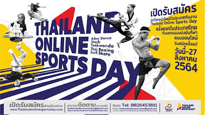 13 สิงหาคม 2564, กรุงเทพฯ – การกีฬาแห่งประเทศไทย กระทรวงการท่องเที่ยวและกีฬา จัดกิจกรรม “Thailand Online Sports Day” เปิดโอกาสให้คนไทย ทุกเพศ ทุกวัย ร่วมส่งคลิปวิดีโอเข้าร่วมการแข่งขันกีฬาผ่านระบบออนไลน์ ชิงรางวัลรวม 152,000 บาท เพื่อรณรงค์ให้ประชาชนหันมาออกกำลังกาย เล่นกีฬาเพื่อสุขภาพแบบวิถีใหม่โดยหลีกเลี่ยงความแออัด ตลอดจนสนับสนุนให้เกิดการท่องเที่ยวภายในประเทศ ที่จะขับเคลื่อนพัฒนากีฬาและสร้างรายได้ให้กับประเทศชาติได้เป็นอย่างดี